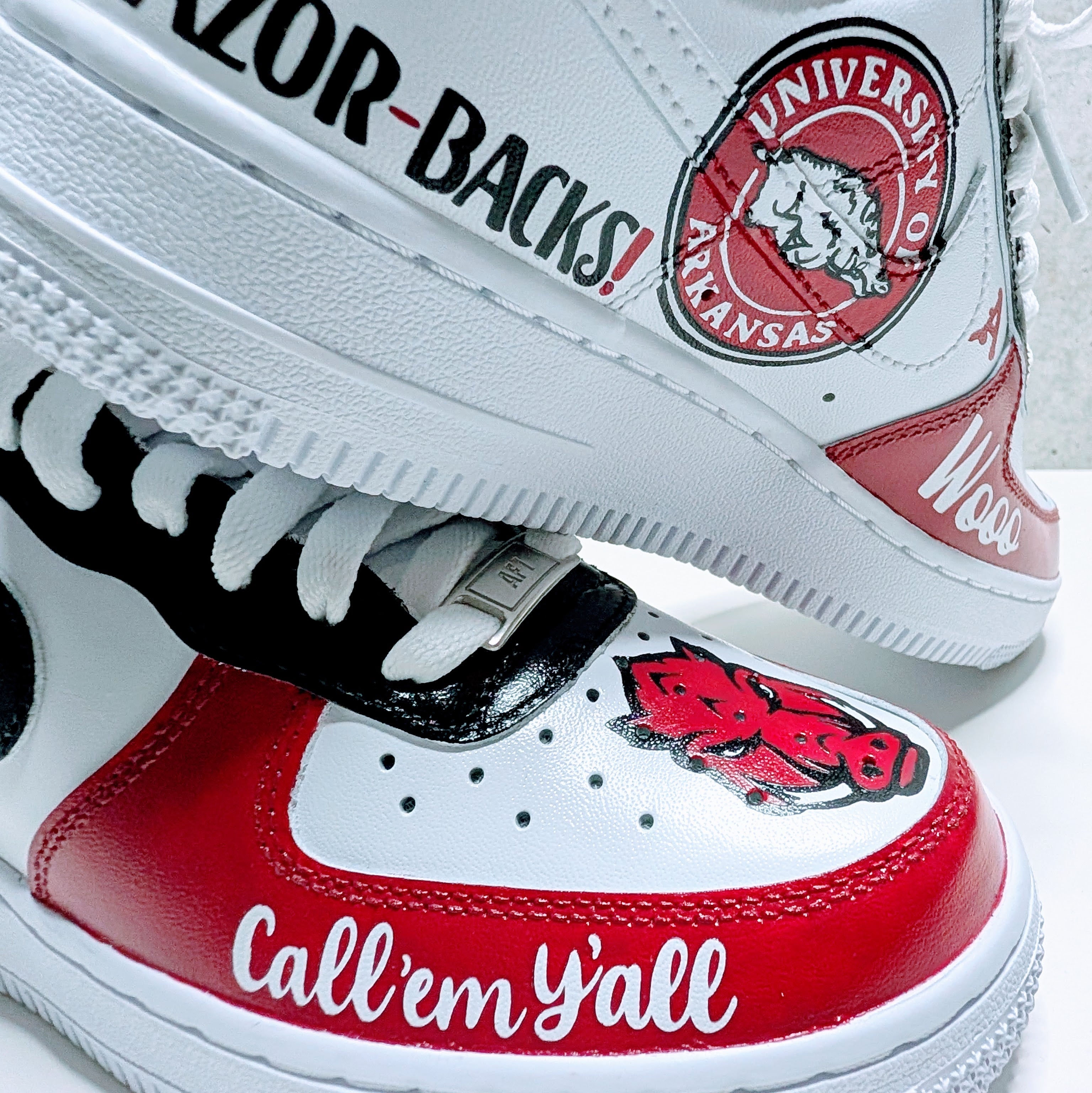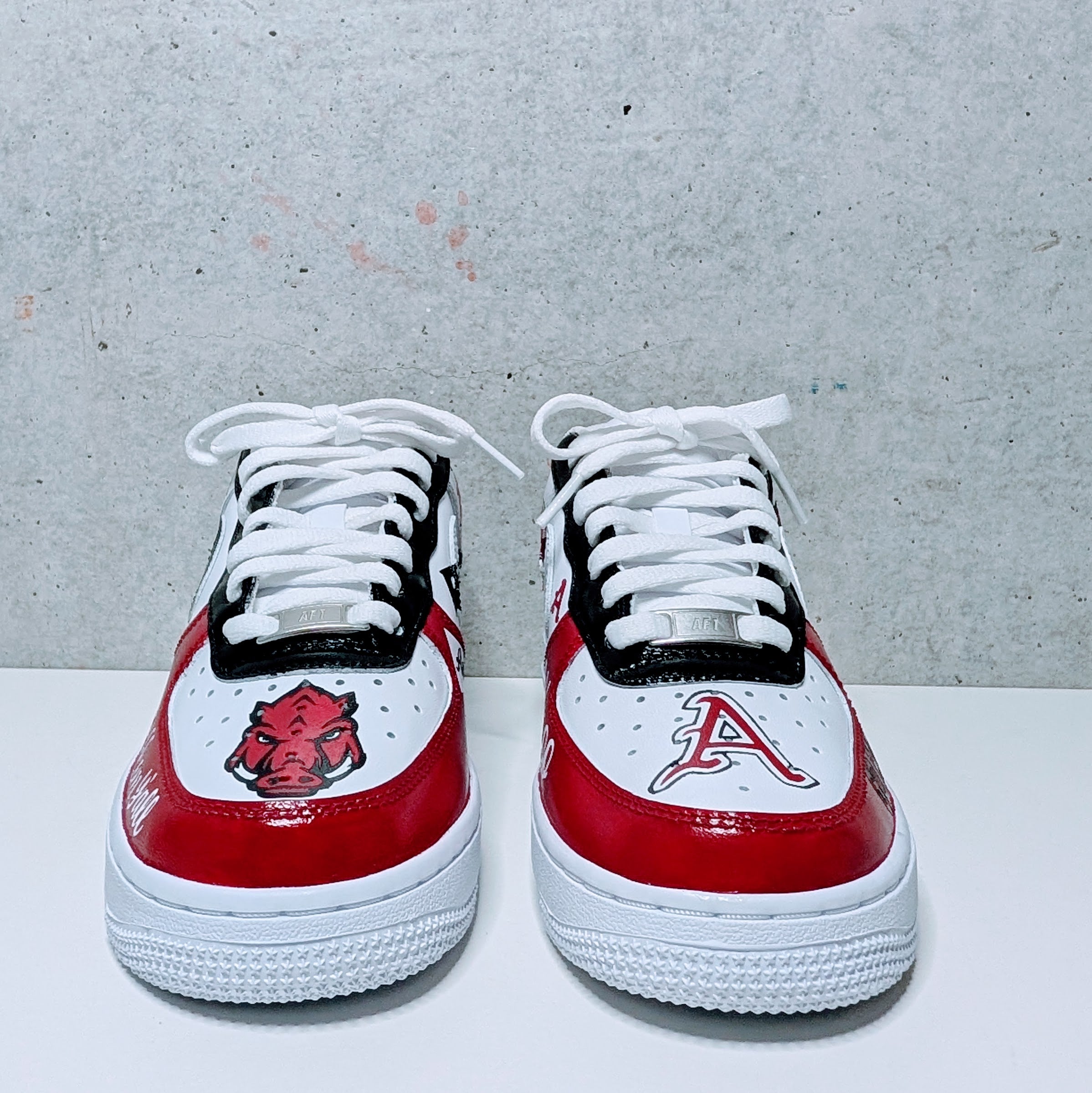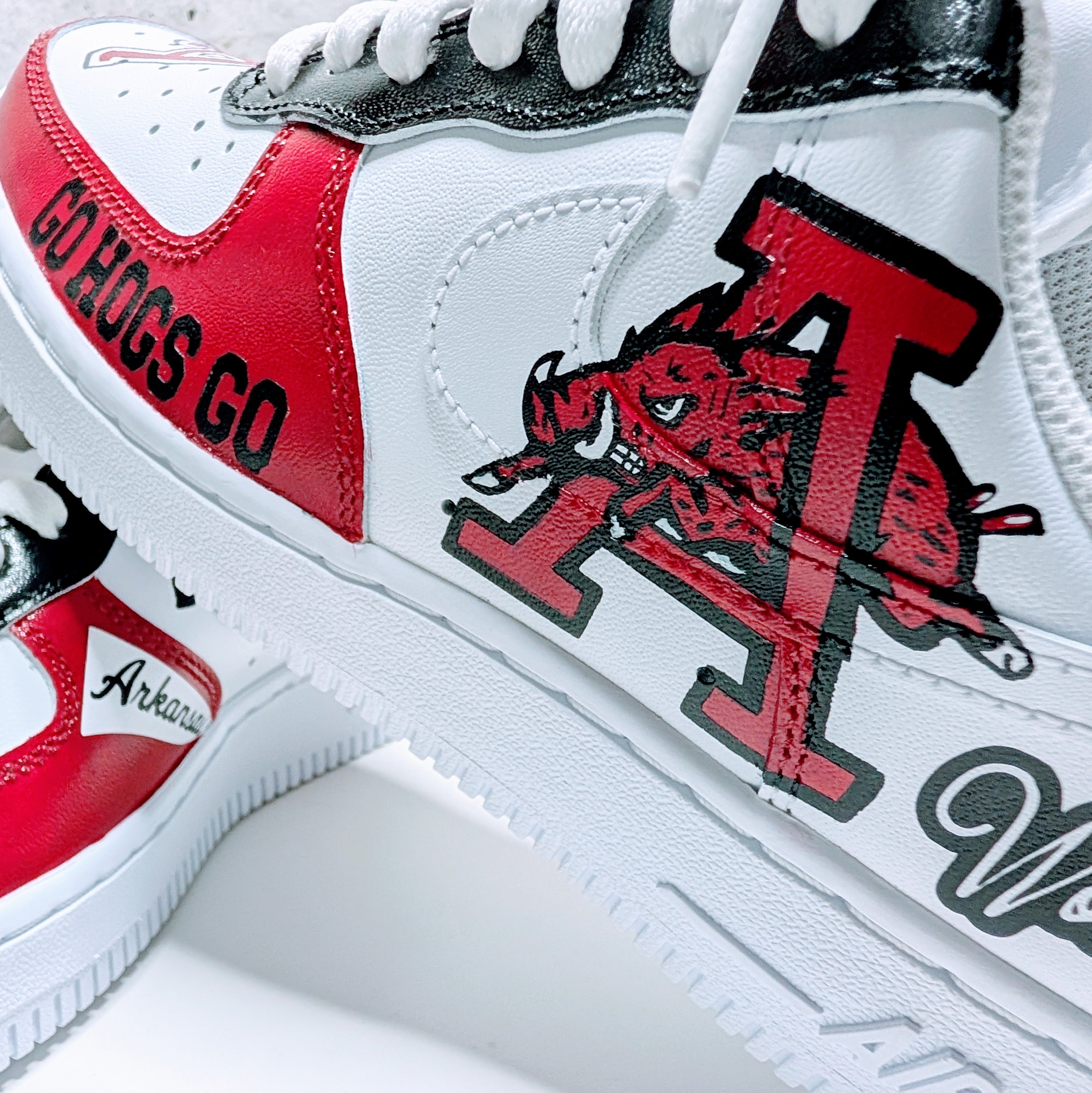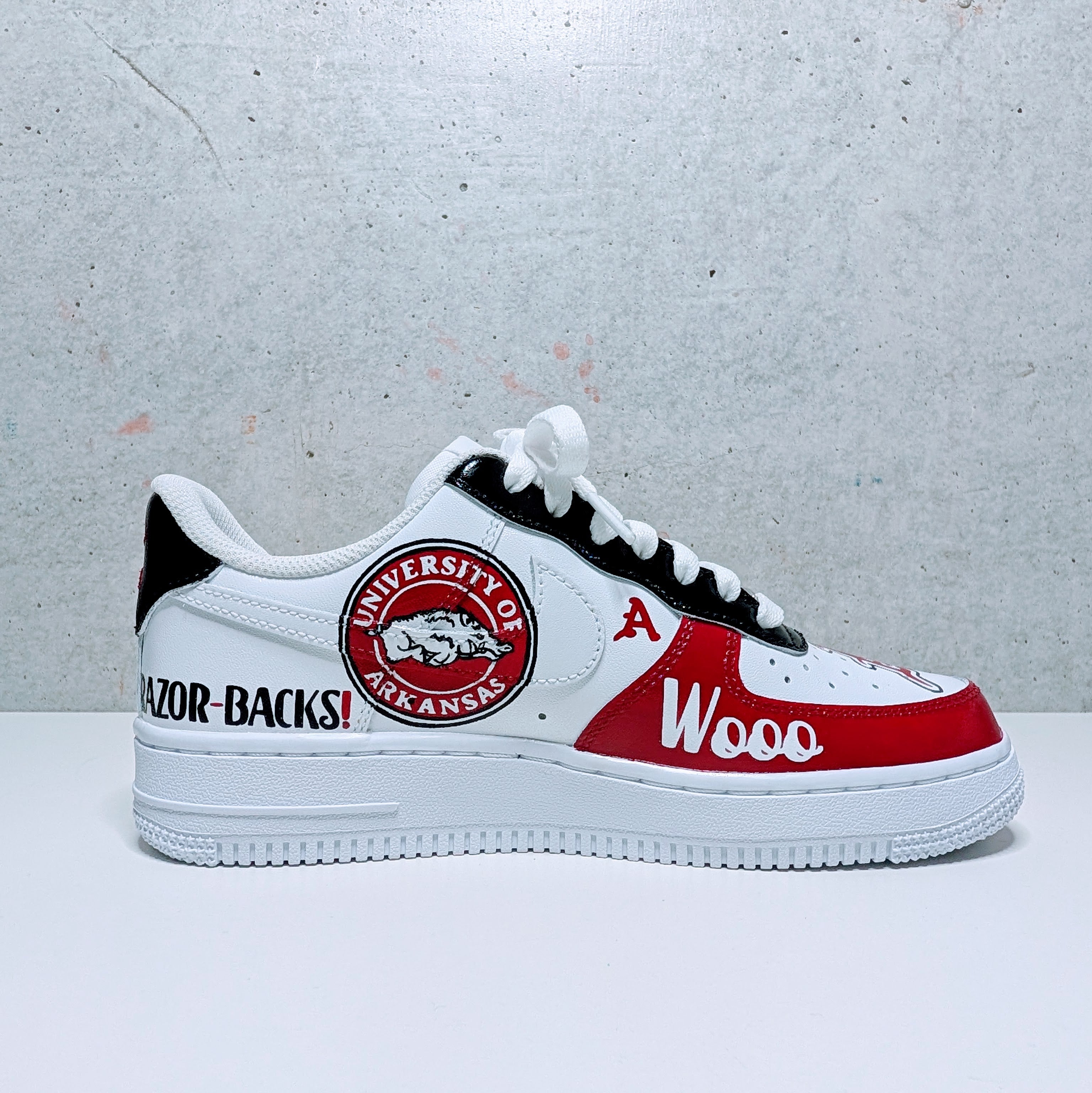 Step up your game day style with our Custom Painted Air Force 1 SEC NCAA Sneakers. Whether you are tailgating in The Grove, calling the Hogs, or cheering 'Roll Tide', these shoes are designed exclusively for you to showcase your conference pride. Every pair is a wearable work of art, meticulously hand-crafted using premium Angelus paints to ensure vibrant colors that withstand the test of time.
