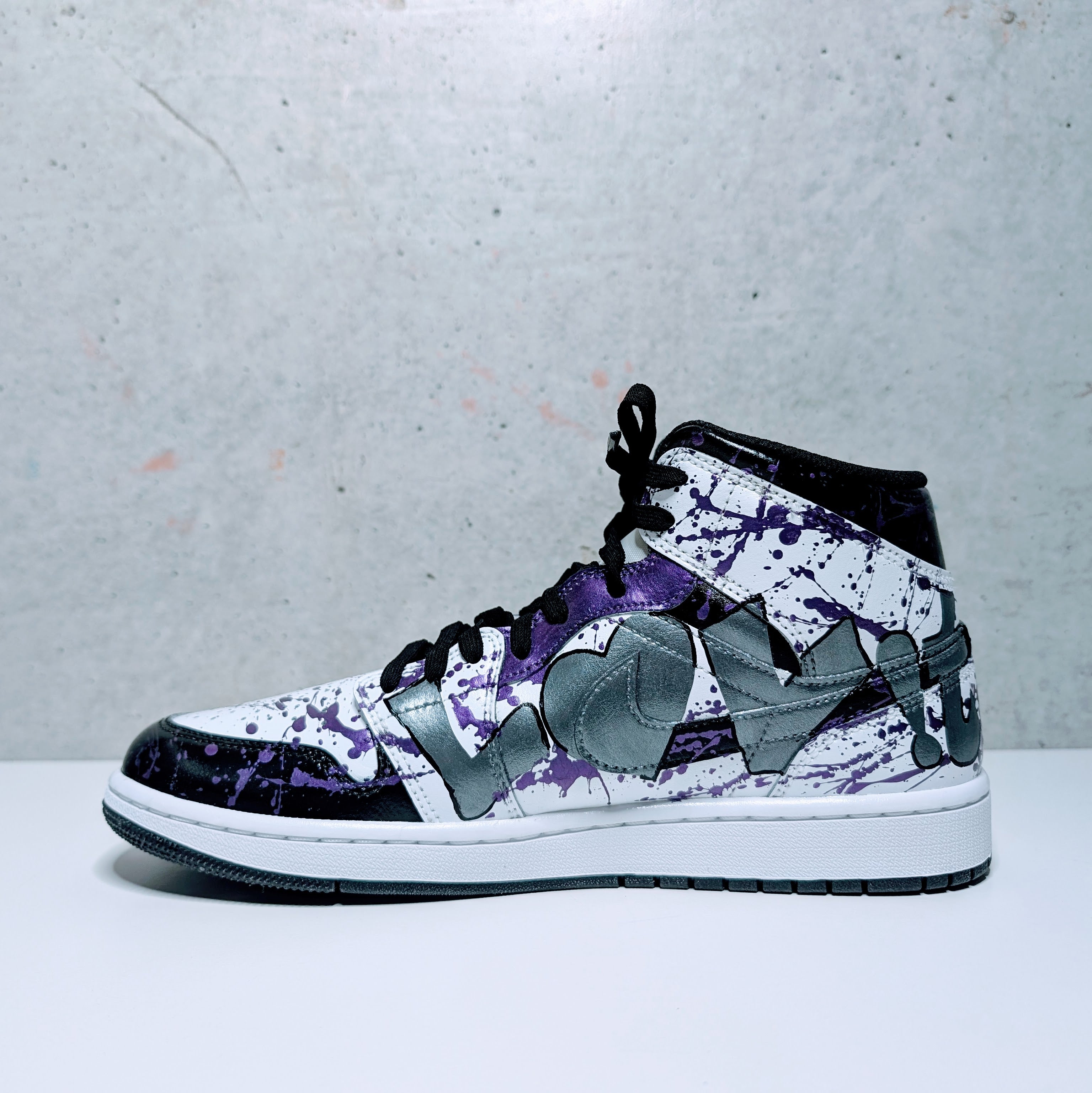 Custom Painted Air Jordan Mid "Love It / F*¢k It" Graffiti Sneakers | Hand-Painted Splatter Art