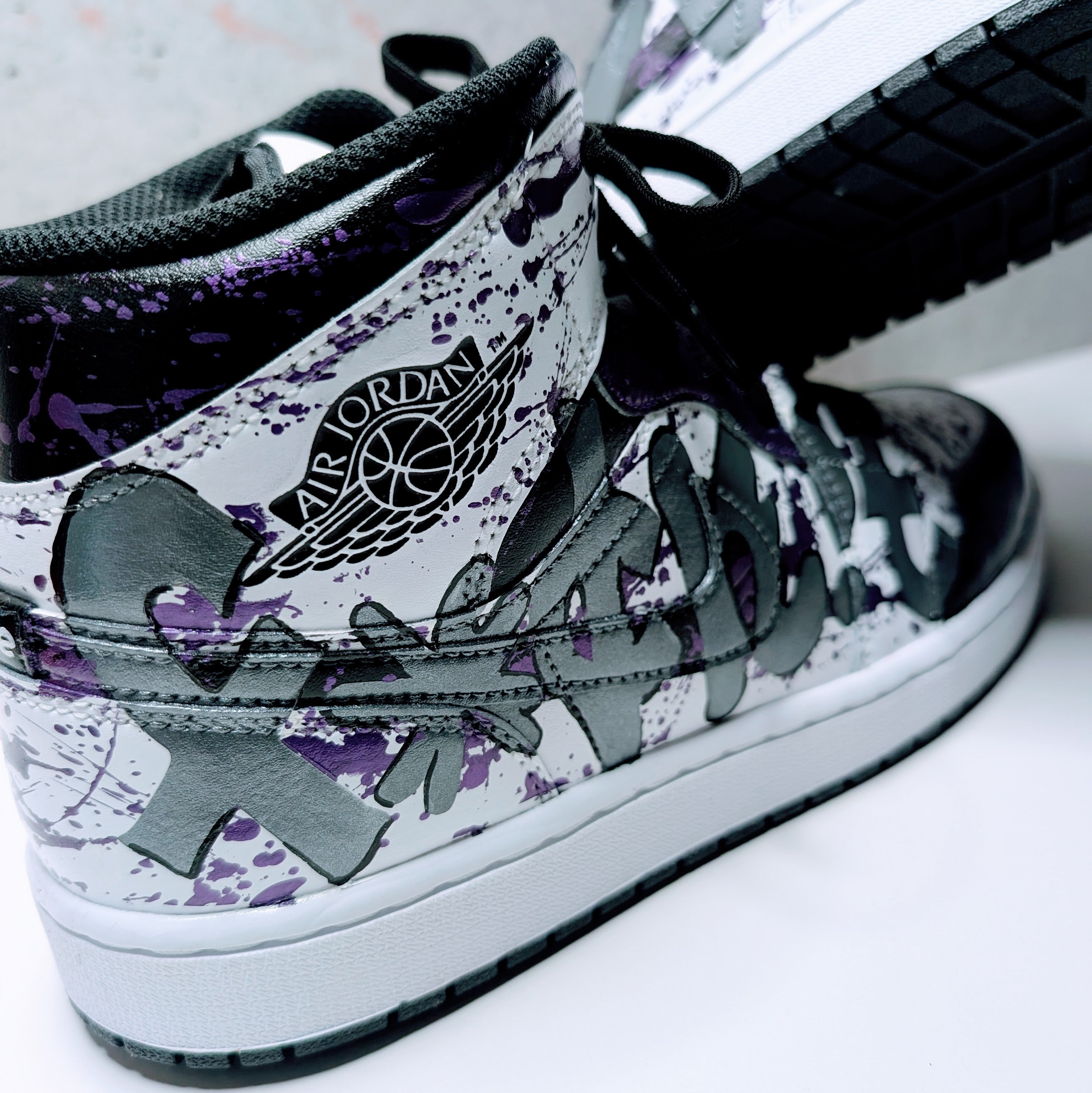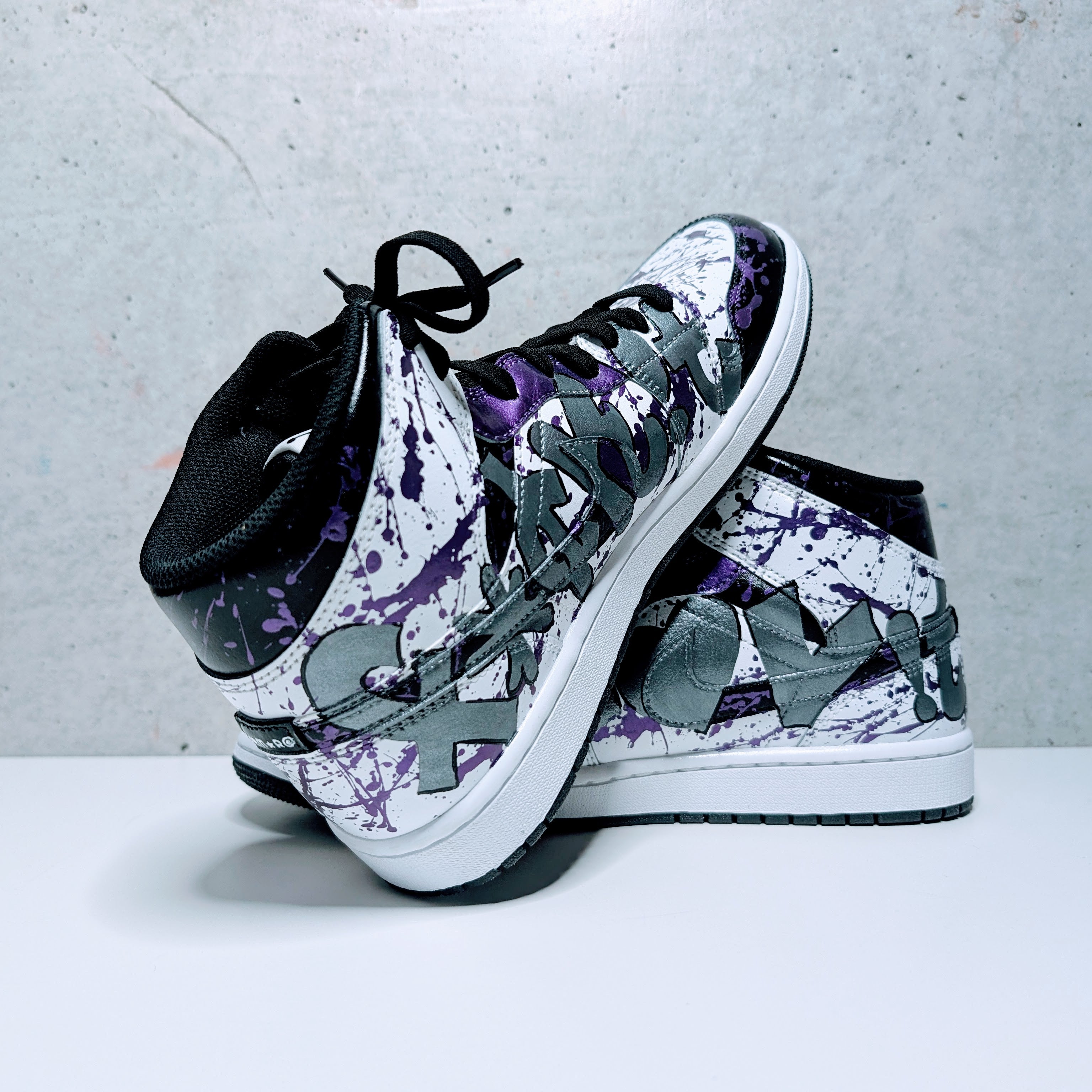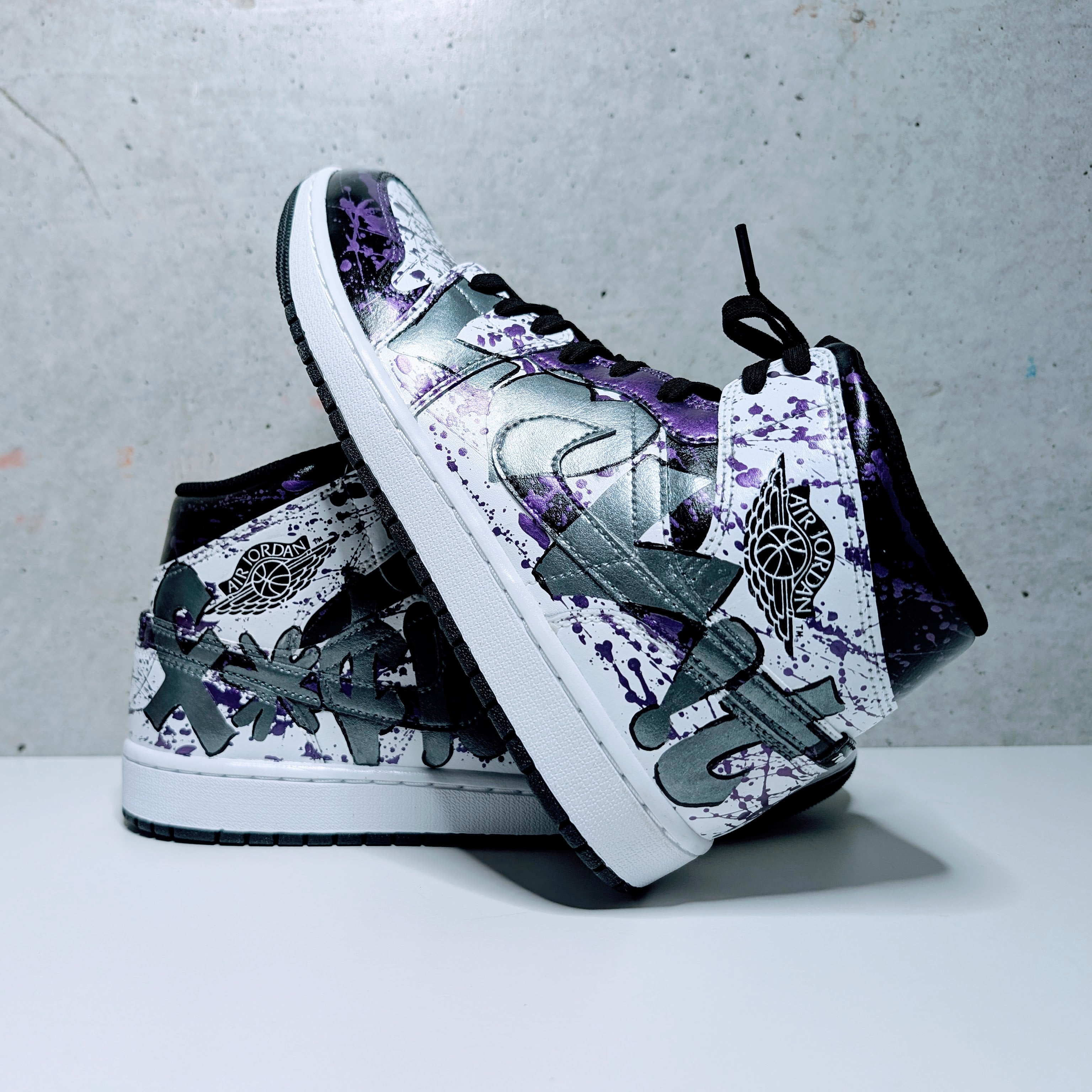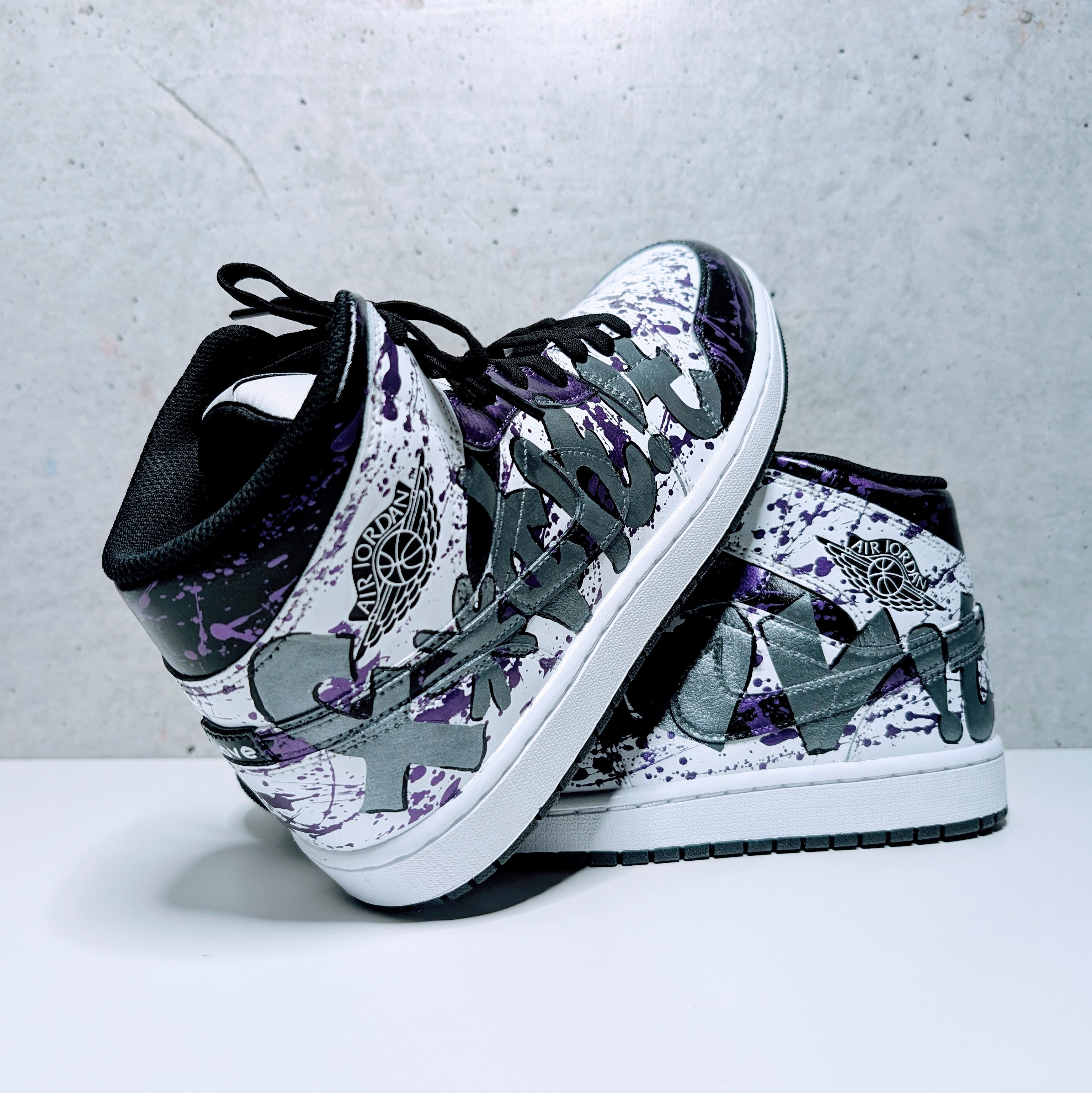 We believe in authentic self-expression. Each pair is 100% hand-painted on brand-new, genuine Air Jordan Mid sneakers. We use premium Angelus paints and finishers to ensure the artwork is vibrant, water-resistant, and crack-resistant. The graffiti style is hand-lettered, giving it that genuine street-style aesthetic that mass-produced shoes can't replicate.